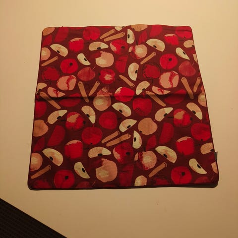 Myydään joulunpunainen silkkityynyliina koristetyynyyn, koko 38x38cm. Tyynyliina on erittäin hyvässä kunnossa.