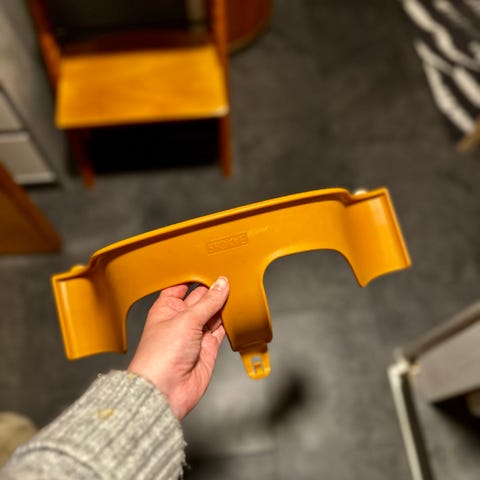 Stokke Tripp Trapp turvakaari valkoisena. Turvakaari on suunniteltu käytettäväksi Stokke Tripp Trapp -syöttötuolin kanssa lisäturvaa tarjoamaan lapselle. Baby set turvakaari.