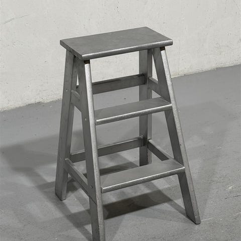 Vintage-keukentrapje, jossa on puinen askelma ja musta formica ylälauta. Vanha kunto, käytön jälkiä ja hieman minimiruostetta metallisessa alajalkalevyssä. (Se näkyy kuvissa, mutta on vaikea nähdä selvästi).