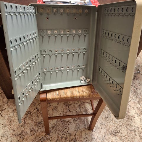 Alica metallinen työkalukaappi, jossa useita vetolaatikoita ja sivulla rei'itetty säilytystila. Soveltuu työkalujen ja pienten osien järjestämiseen ja säilytykseen.
