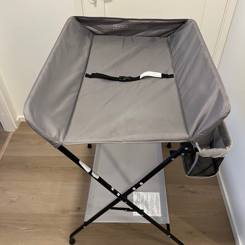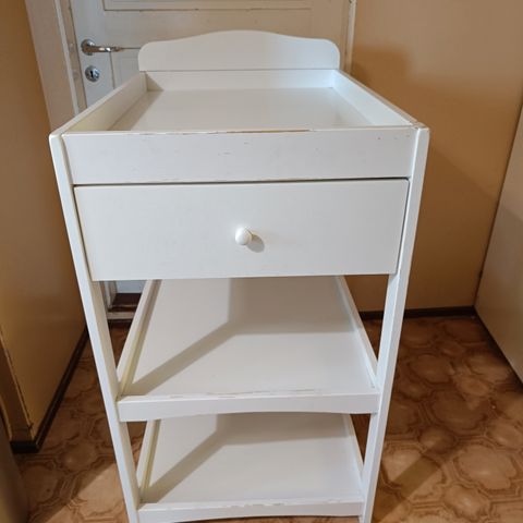 Hoitopöytä jossa kylpy. Pehmuste revennyt, muuten ehjä. Nopea haku
