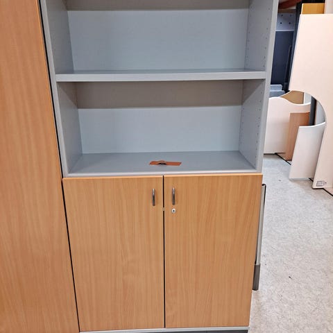 Pyökin värisellä ovella oleva hyllykaappi - tällä varasto ja arkisto kuntoon. Kaappi on lukittava, joten saat sinne myös aarteita talteen.