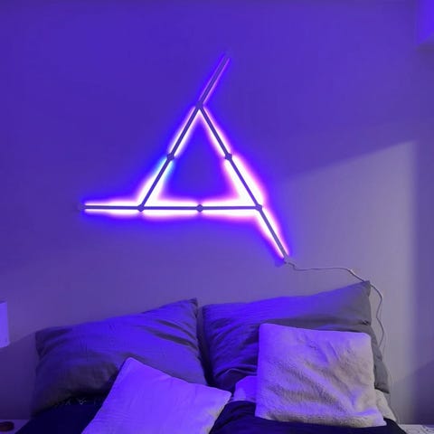 Nanoleaf led seinävalo. Jäänyt vaille käyttöä yhdeksän seinävaloa, joiden muotoa voi vaihdella mieltymyksien mukaan. Puhelimessa sovellus, josta valoja voi säädellä