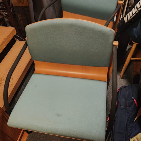 Siniharmaa työtuoli. Vankka, painava, pyörivä. Nouto koulukadulta.