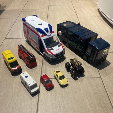Pieni kokoelma leluautoja eri väreissä ja malleissa