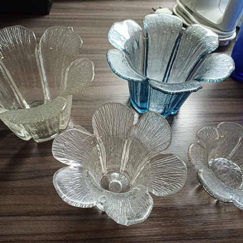 Mäntsälän Lasisepät "Terälehti" tuikkualustat, kipot.