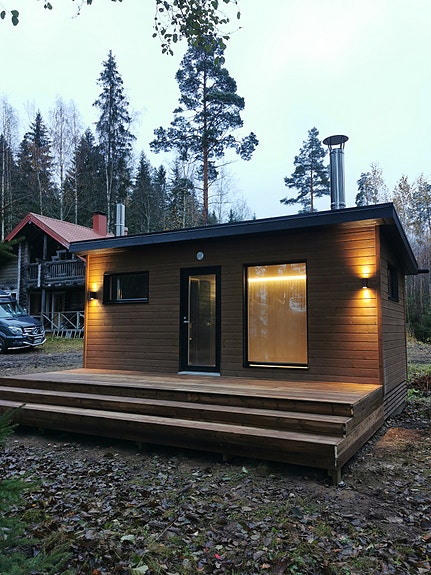 Hakusanat: pihasauna, sauna, rantasauna, mökkisauna, pihasauna pukuhuoneella, pukuhuoneellinen pihasauna, Käyttövalmis pihasauna, majoitustila, aitta, aittarakennus, vierasmaja