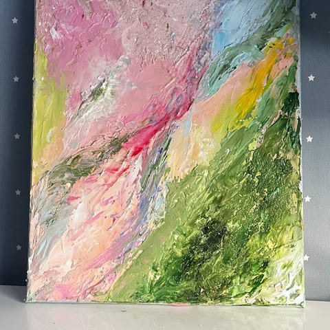 Abstrakti taulu, jossa käytetty monivärisiä sävyjä ja tekstuuripintaa. Maalaus on tehty paksulla maalikerroksella, joka antaa teokselle kolmiulotteisen ilmeen. Värit vaihtelevat vihreästä, sinisestä, ruskeasta ja kullanhohtoisista yksityiskohdista.45x60