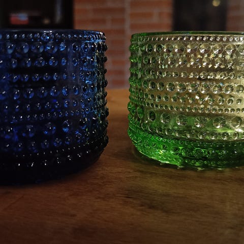 Siniharmaa, meren sininen, punainen, vihreä ja kaksi vaaleansinistä.