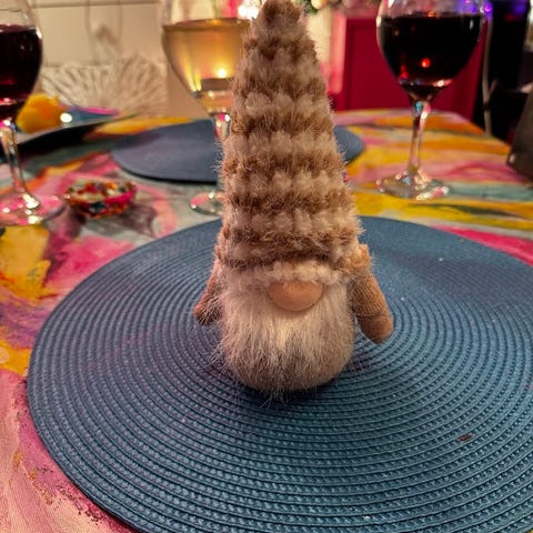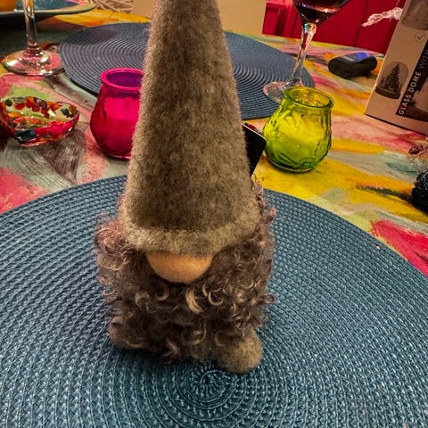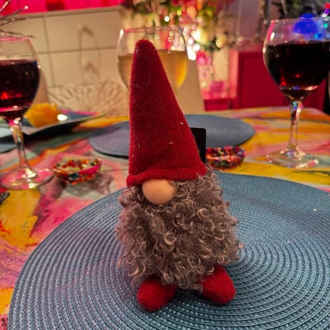 Harmaakähäräturkkinen punahiippainen tonttu (tuote ei ole lelu).