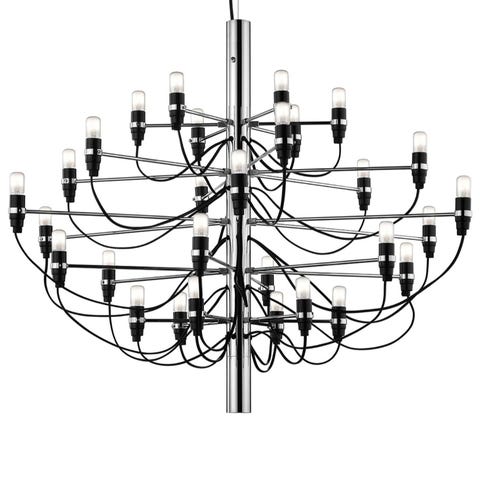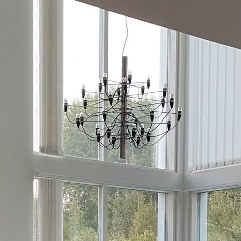 Flos Gino Sarfatti kattokruunu tarjoaa modernin valaistusratkaisun useilla valaisinosilla. Sen rakenne koostuu useista säteittäisistä varjostimista ja johdoista, jotka luovat laajan valonjakelun. Sopii tiloihin, joissa tarvitaan tehokasta ja monipuolista valaistusta.