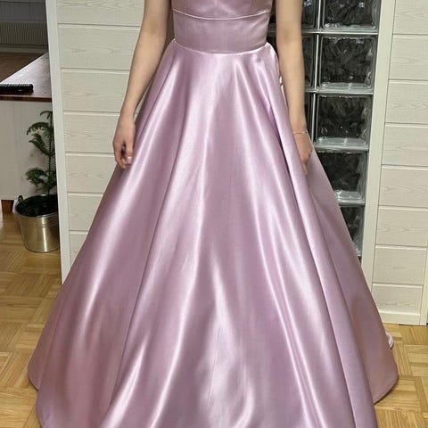 Zazabellasta ostettu punainen vanhojentanssimekko. Helmassa myös kimalteita. Takana nyöritys, joten kokoa helppo säädellä vähän pienemmälle / isommalle.