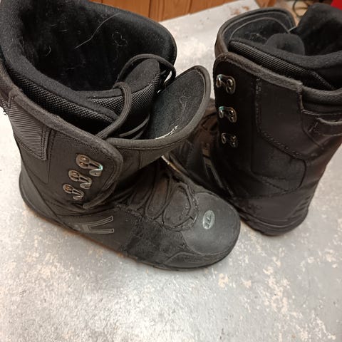 Siistit, kaikinpuolin ehjät ja hyväkuntoiset Northwave Arrows, sorel tyyppiset retrokengät lumilautailuun. Jämäkkä kenkä joka tukee hyvin jalkaa! Nauhat sekä sisä- että ulkokengässä.