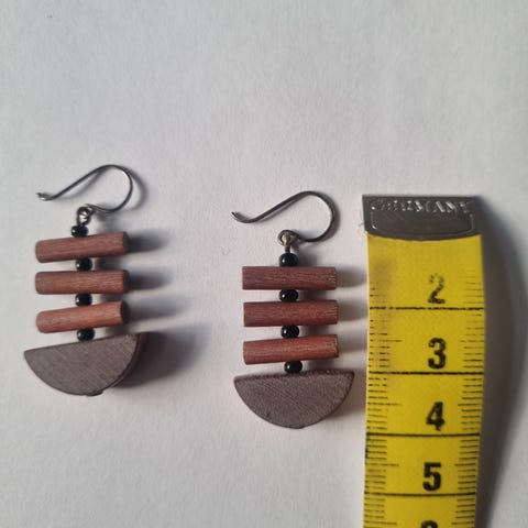 Aarikka korvakorut valmistettu hopeasta, unisex-malli. Korvakorut ovat hopeaa, musta keskiosa puuta.