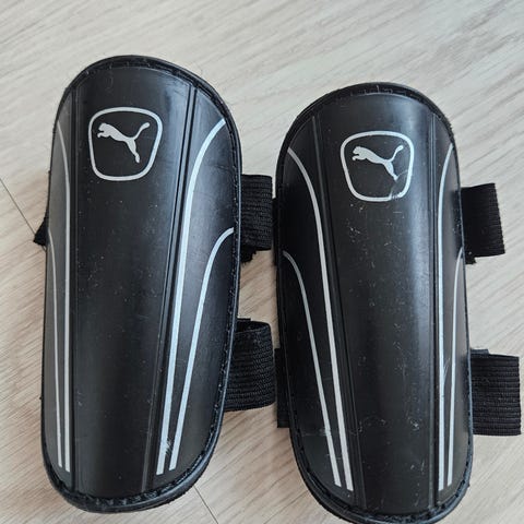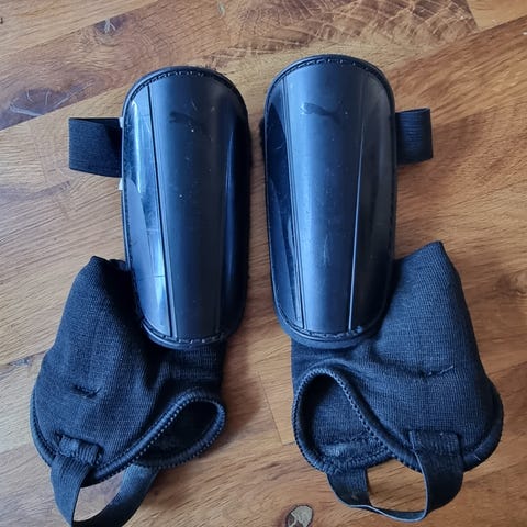 Lasten Puma King säärisuojat tarranauhakiinnityksellä. Meillä olivat käytössä jalkapallossa. Kokolappu on leikattu pois, joten en ole varma koosta, mutta 14,5cm on suojan korkeus. Myynnissä Espoon Painiityssä. Maksu käteisellä tai Mobilepaylla, voin myös postittaa.