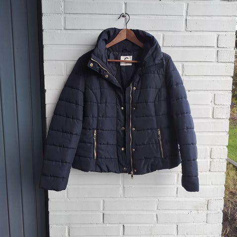 Pitkä takki, koko M mutta reilua mitoitusta. Sivuilla nepparit.
