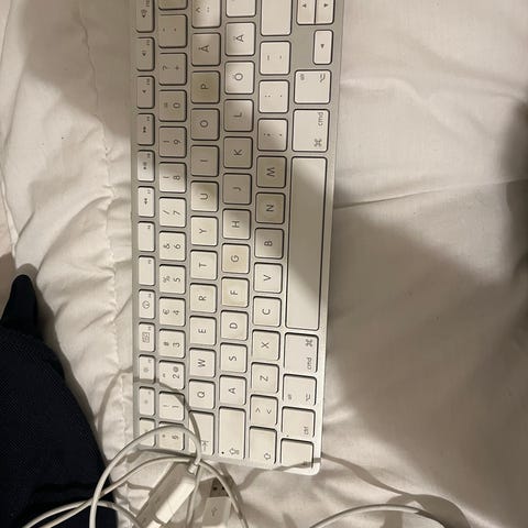 Myynnissä toimivaksi testattu Applen langallinen näppäimistö, jossa (ilmeisesti) venäläiset näppäimet.