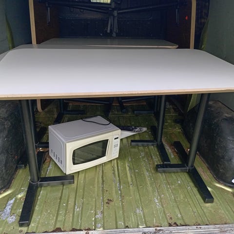 Todella tukeva ja laadukas pöytä metalli jalalla.