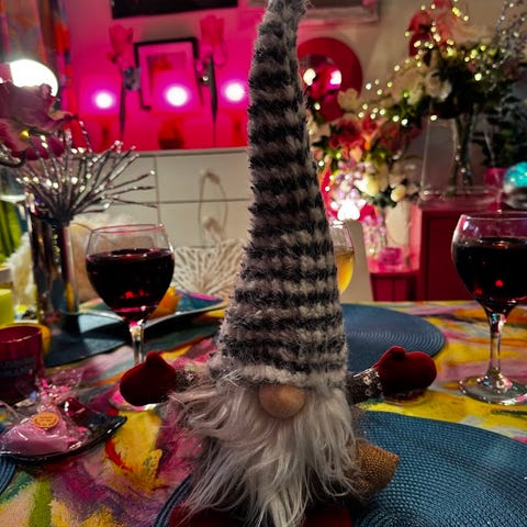 Uusi vihreä-valko-raitahiippainen tonttu (Tuote ei ole lelu)