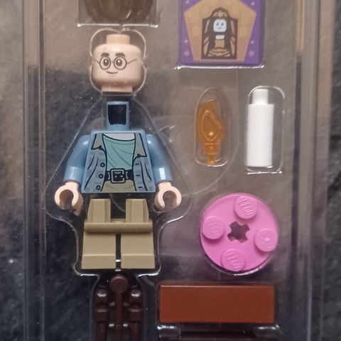 LEGO Harry Potter minifiguurit, sisältäen 6 hahmoa ja lisävarusteita kuten taikasauvat ja hopeanvärinen näkymätön viitta.