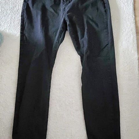 Väri syvä musta eli ei ole haalistunut, housuissa tarkoituksella paikoin kulutettua efektiä (kuvaa vaalennettu tarkoituksella, että malli edes jotenkin erottuisi!).