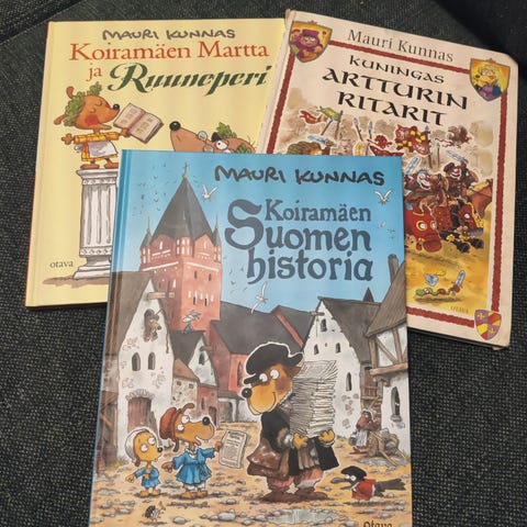 Hyväkuntoiset. Koiramäen lapset kaupungissa, Koiramäen Suomem historia, Koiramäen talossa, Puhelin- Bilin lännensirkus, Seitsemän koiraveljestä. 10€ kpl. Nouto tai postitus.