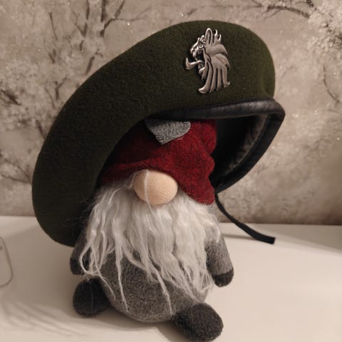 Tumman sininen baretti, leijona/ankkuri kokardilla. Koko 58. Ei mikään "leipurin lakki". Lakin takana olevista nyöreistä voi kokoa hieman säätää, kiristää/löysätä. Postitus sisältyy.