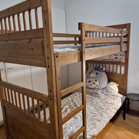 Korkeus kasattuna sängyt päällekkäin n. 140cm.