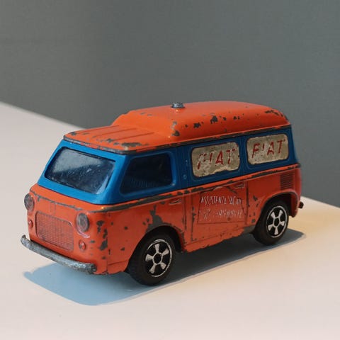 Vanha Italiassa valmistettu Fiat 128 pienoismalli.