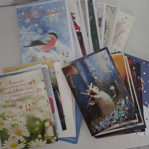 Kulkeneita postikortteja 1980-90 luvuilta, joista suuri osa on onnittelukortteja.