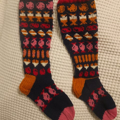 Myydään sini-valkoiset neulotut villasukat, koko 38-39. Sukissa on perinteinen kuviointi ja ne on valmistettu lämpimästä materiaalista, sopivat käytettäväksi viileissä olosuhteissa.