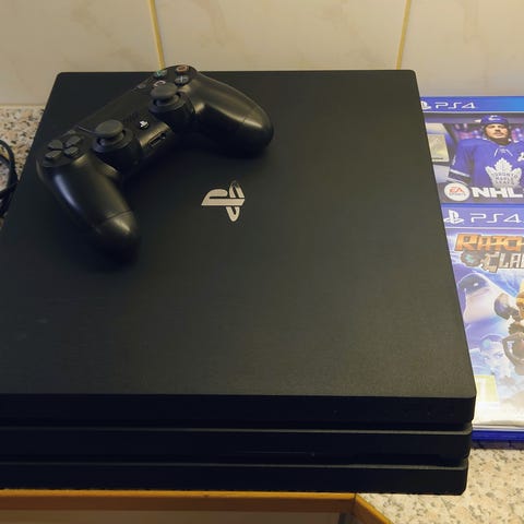Toimiva Playstation 4 Pro Pelikonsoli. Mukaan kaksi ohjainta, hdmi-kaapeli, virtajohto ja ohjaimen latauspiuha.