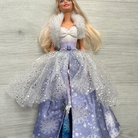 Barbie nuken asussa on valkoinen yläosa ja vaaleanpunainen, kuvioitu hame. Hiuksissa on huntu ja kädessään morsiammella kaunis hääkimppu. Asun kruunaa kauniit valkoiset korkokengät. Sormus on aikanaan kadonnut juhlahumussa.
