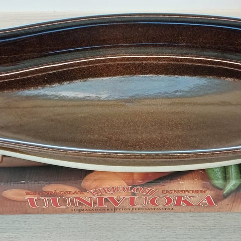Hyväkuntoinen Kermansaven uunivuoka kalalle, pituus 43,5 ja leveys 20,5