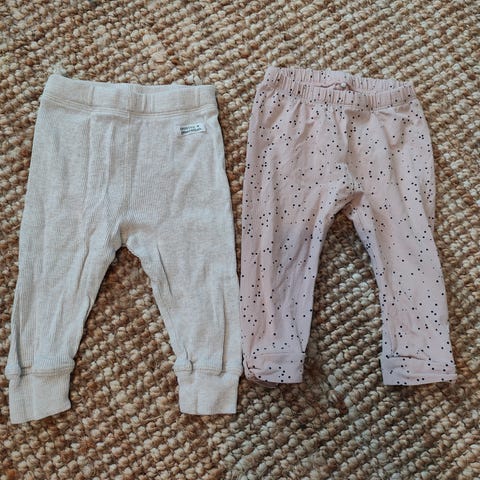 Hyväkuntoiset leggingsit, pesuhaitua pinnassa. Lahkeiden suissa pitsireunus.