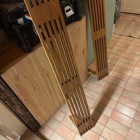 Puinen ikkunalauta. Raot, niin voi asentaa myös patterin päälle.
