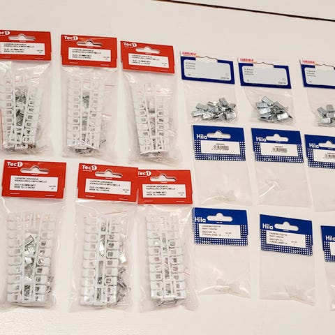 Verhonipistimiä: I-kiskon rissaliuku-nipistimellä 48 kpl + 4 kpl ja U-kiskon liuku-nipistimellä 27 kpl