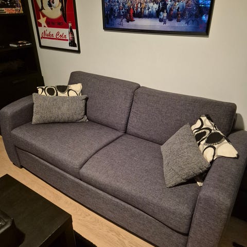 Tästä myyntiin uudenveroinen vuodesohva muuton tieltä pois. Ollut käytössä noin vuoden. Viimeisestä kuvasta selviää sohvan mitat. Nouto Tammelasta.