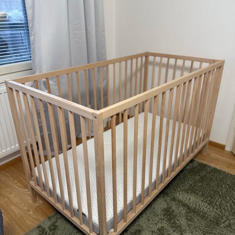 Vanhemman mallin ikea pinnasänky. En löytänyt vastaavaa ikean katalogista. Sängyssä umpinaiset valkoiset päätylevyt ja sivupuolat ovat puun väriset. Kaikki osat hyvässä kunnossa. Ollut lämpimässä yläkerran varastohuoneessa. Kissatalous. Vain nouto.