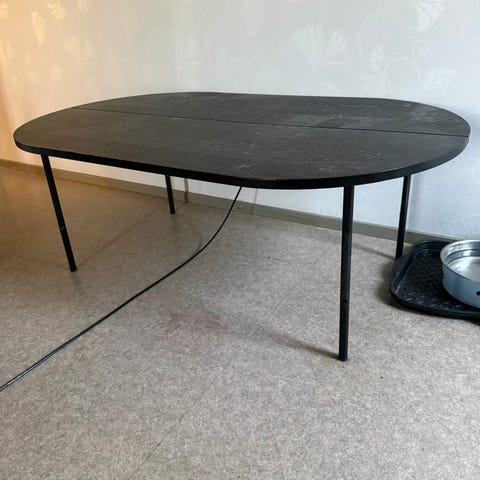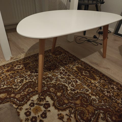 Myydään sohvapöytä, jossa pöydän päällä ja sivussa muutamassa kohdassa näkyvissä pieniä kolhuja. Haku Kangasvuorelta.