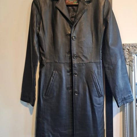 Keskipitkä vintage nahkatakki. Yksi nappi puuttuu edestä. Lisätty erillinen vyö(ei siis alkuperäinen).