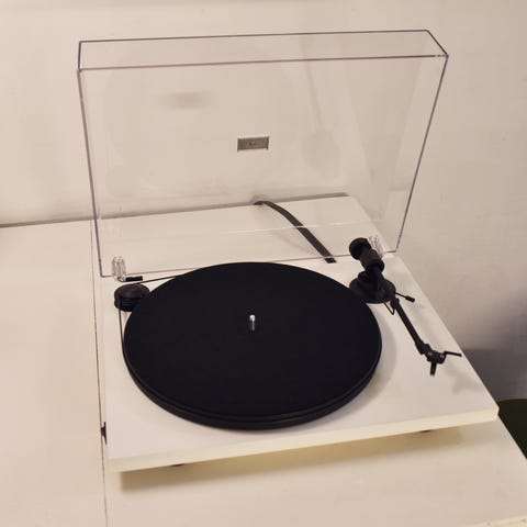 Tässä kaupan Pro-Ject SE II levysoitin.Manuaalinen laite,ei siis automatiikkaa.33 1/3 ja 45 rpm.Sisältää 2 levylautasta,akryyli,ja metalli+kumimatto.Akryylilautasen kera ei tarvita kumimattoa.Metallilautanen ei käy MC-rasioille,sillä rasiat ovat magneettisia,kuten tämä metallilautanen.MC rasioille siis akryyli.Verkkomuuntaja sisältyy.Alla säädettävät jalkakartiot,joten saa oikoiseksi myös mäkisemmässä maastossa.Sisältyy myös 2 kpl takapainoa,joista toinen kevyille,ja toinen painavemmille äänirasioille.Voin harkita Ortofon Vivo Red MC-rasiaa myyntiin,mutta ei sisälly tähän hintaan.Postitus järjestyy.100% palautusoikeus.