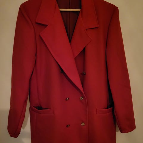 Naisten ompelijalla teetetty joulunpunainen bleiseri. Kunto erinomainen, koko n. 42-44. Saa tulla sovittamaan ilman ostopaineita. Saa myös tarjota, pääasia että tämä laadukas suomalainen käsityö pääsee käyttöön.