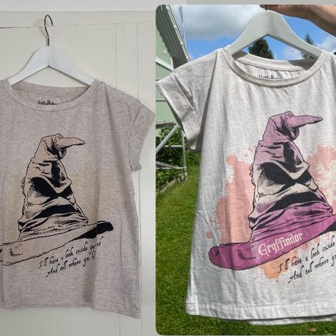 T-paita, jossa paljettikuva, joka vaihtuu Gryffindorin ja Slytherinin välillä