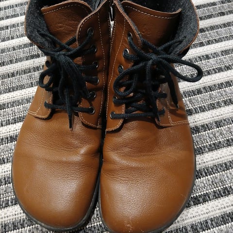 Myydään mustat Be Lenka -paljajalkakengät, Polaris talvimalli, koko 40. Leveys 9,4cm sisäpituus 25,9cm (käytän normikengissä kokoa 38-39). Käytetyt ja sisältä kuluneet (kantapäät, katso kuvat), kuitenkin muuten ehjät, tahravapaat ja toimivat. Päältä nupukkinahkaa, sisältä lampaannahkaa, sisäpohjallisen materiaali villa/kierrätetty PU. Ulkopohja kumia.