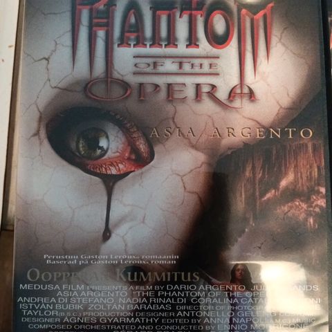 Phantom of the Opera DVD-elokuva. Sisältää elokuvan ja ekstramateriaalia, kuten haastatteluja ja dokumentteja. Ikäraja 15 vuotta.