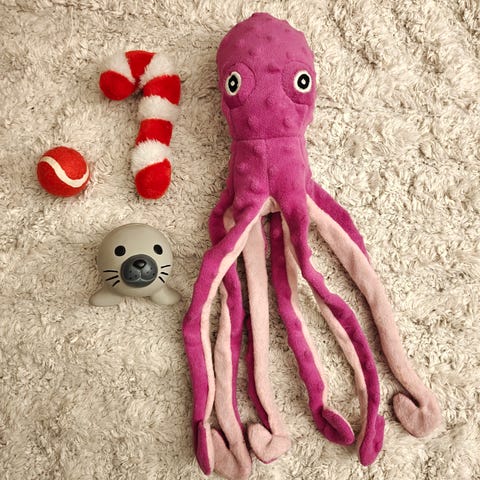 Myydään koiran leluja. Omat chihut eivät ole tykänneet näillä leikkiä niin jääneet käyttämättömäksi. Iso pehmeä vinkuva saukko, pehmeä vinkuva siili, kaksi köysilelua sekä kaksi palloa.