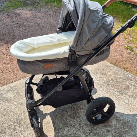 Uutena ostetut Petite Cherie heritage lastenrattaat sinisessä värissä. Ollut käytössä yhdellä lapsella. Rattaissa on säädettävä istuinosa ja irrotettava kantokoppa. Runko on musta ja työntöaisa on verhoiltu ruskealla materiaalilla. Kompaktin kokoiset ja helppo kasata autoon. Rattaat soveltuvat lapsen kuljetukseen eri ikävaiheissa. Hyvässä kunnossa ja säilytetty aina sisätiloissa.