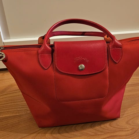 Longchampin pinkki taiteltava laukku. Koko L ja pitkillä kantokahvoilla. Ostettu merkin omasta myymälästä Portugalista, josta minulla on vielä kuitti. Laukku on upouusi. Se on erityisen hyvä muihin vastaaviin laukkuihin verrattuna, koska siinä on yksi suurempi tasku sisällä. Vähittäismyyntihinta on yli 160 euroa. Ja tämä väri ja malli ovat loppuunmyytyjä.