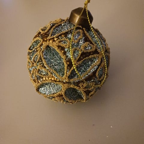 6kpl kuusenpalloja joulukuuseen. Mustissa ja vaaleansinisissä (vaalean turkooseissa) palloissa kissan naama, oranssit hileisiä. Koko n. 4cm.